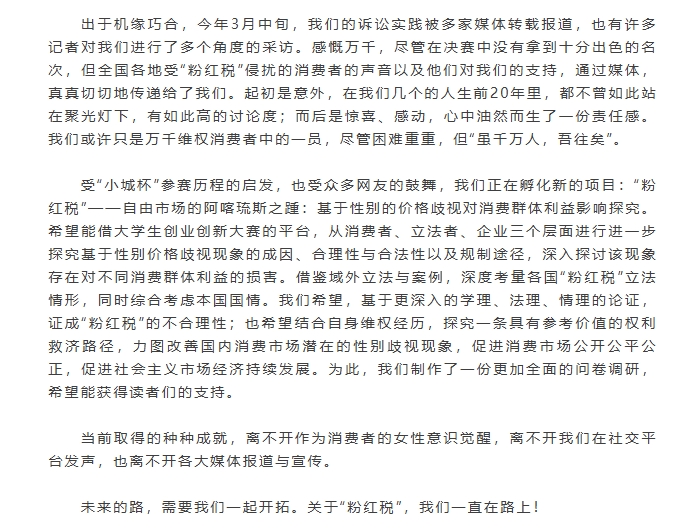 “我与‘小城杯’的故事”获奖征文——《“粉红税”,我们一直在路上》