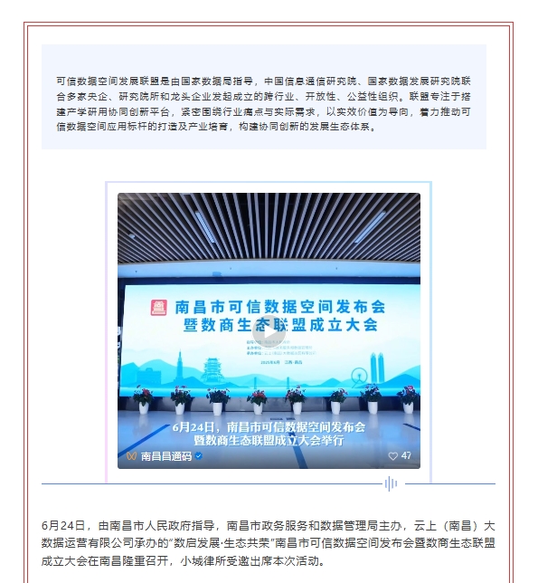 小城所受邀参加南昌市可信数据空间发布会暨数商生态联盟成立大会,共筑数商生态新体系