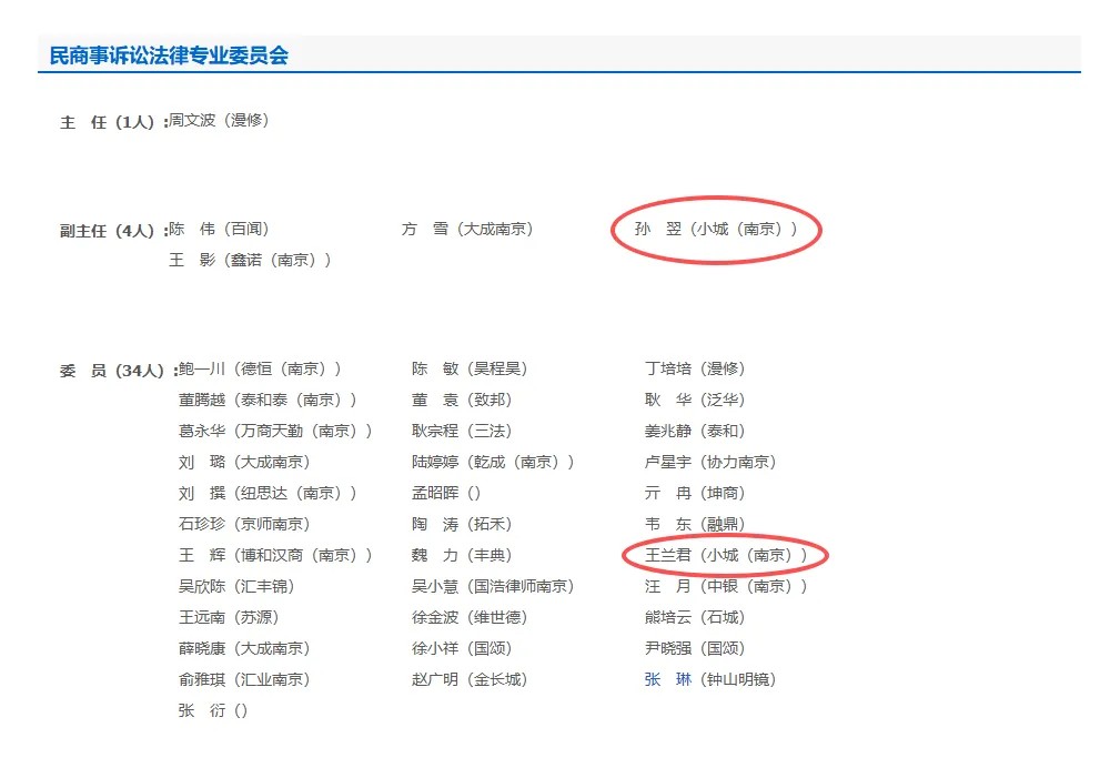 南京市律师协会专业委员会人员调整,本所孙翌律师、王兰君律师获新任命
